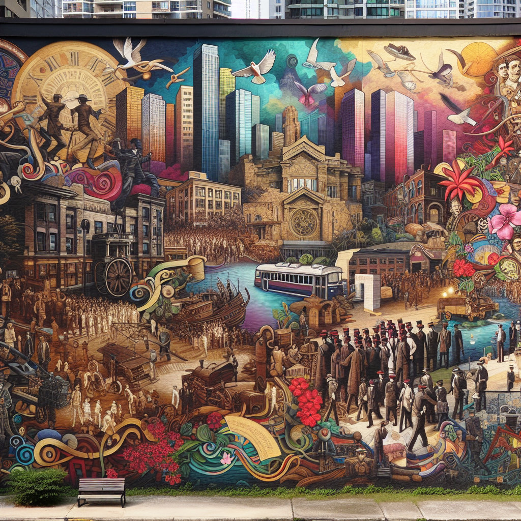 Venture into an alley where history whispers through vibrant murals. This artwork captures the essence of the city’s heritage, showcasing iconic figures and events intertwined with modern graffiti. The rich colors and textures evoke a sense of timelessness, as if the past and present are engaged in a conversation on the walls, telling a story that resonates with every passerby.
