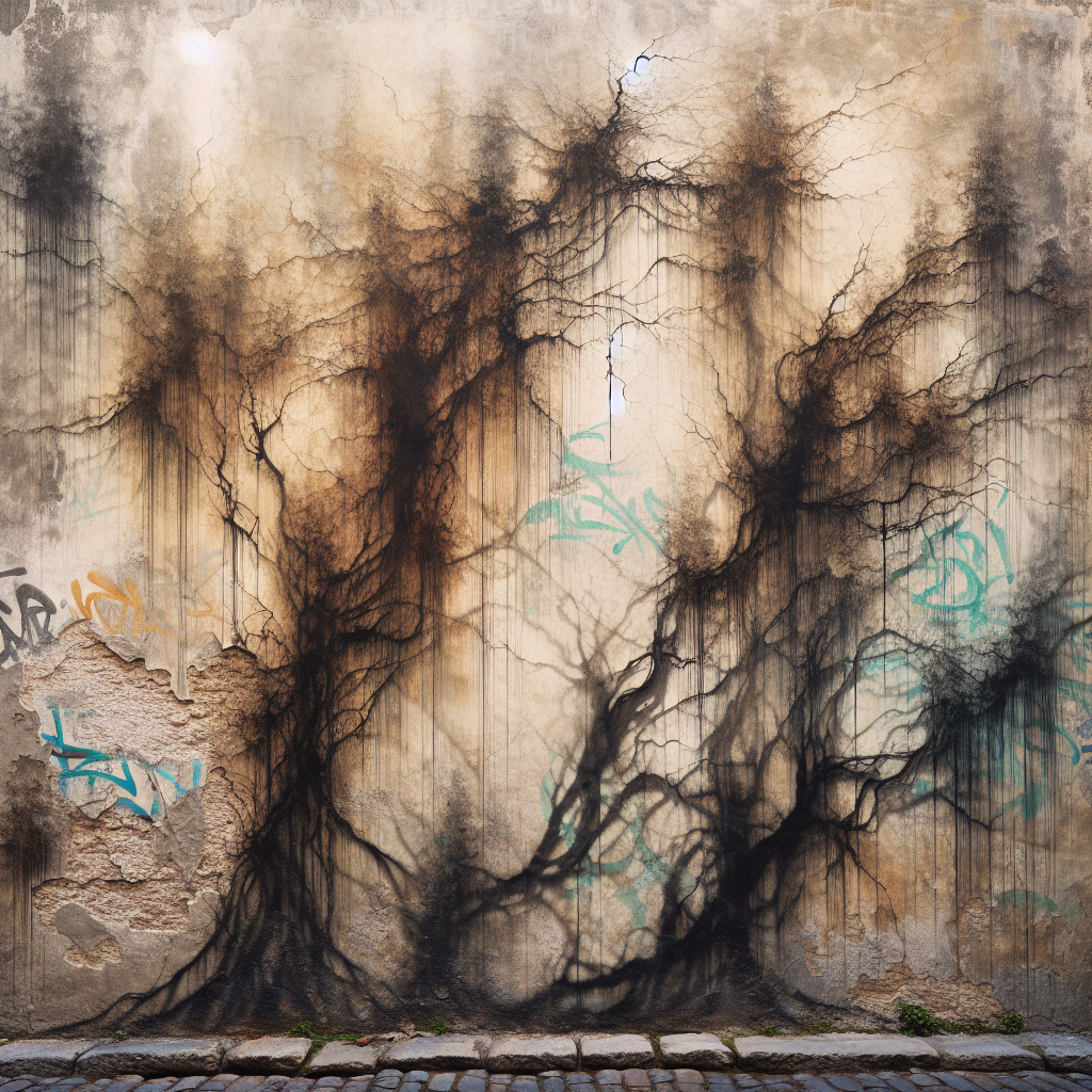 Explore the underbelly of the city where time stands still, and stories linger in every crack and crevice. This haunting piece reveals ghostly silhouettes emerging from weathered bricks, intertwined with delicate vines and fading graffiti art. The contrast of earthy tones against the vibrant hints of spray paint evokes a sense of nostalgia and mystery, inviting the viewer to imagine the tales these walls could tell.